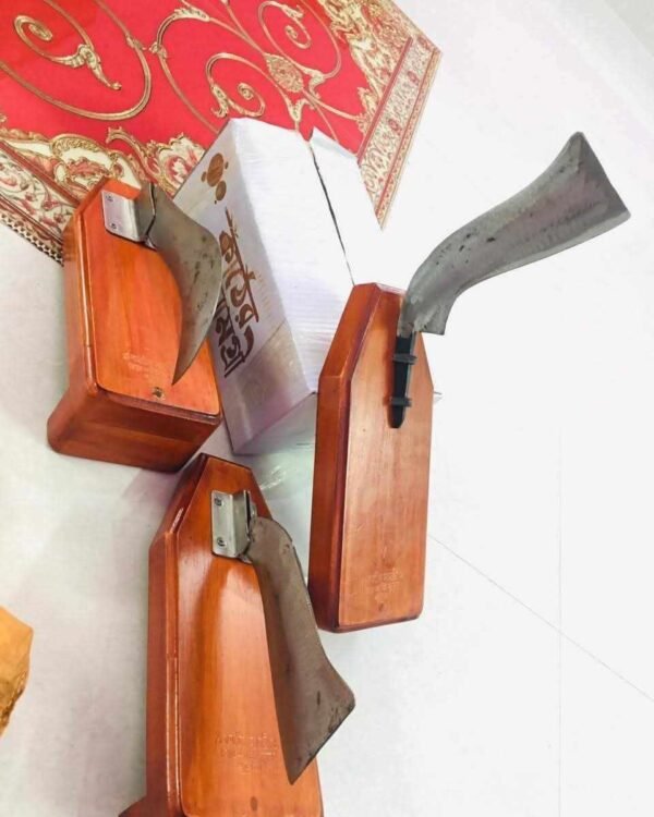 • Mounting: The blade is securely fastened with bolts or rivets into the wooden base